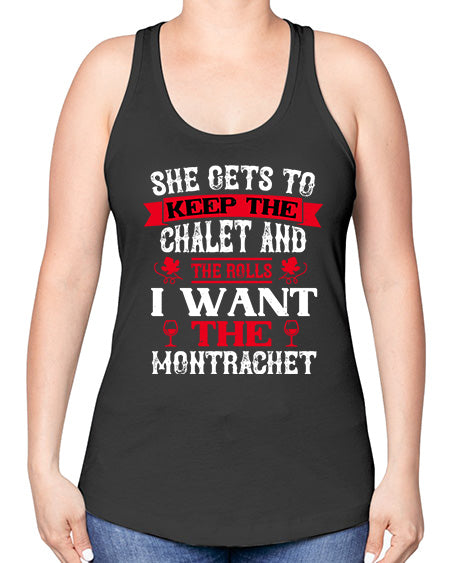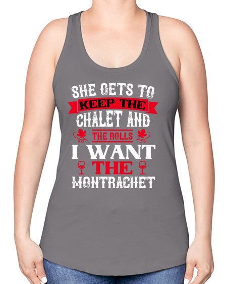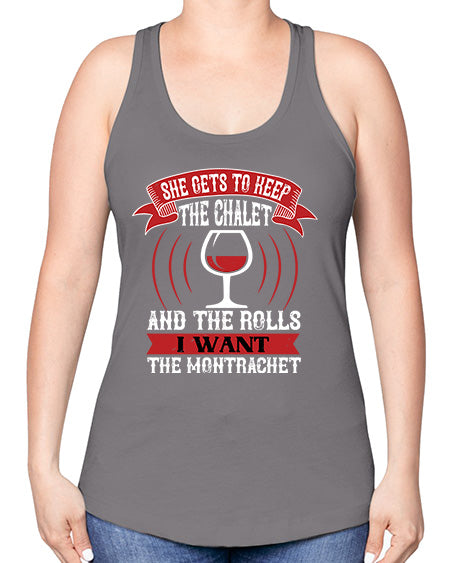 she gets to keep the chalet and the rolls 1526# - wine -Racerback Tank