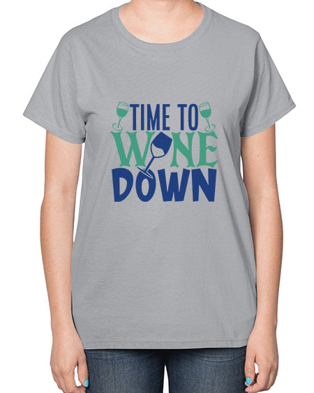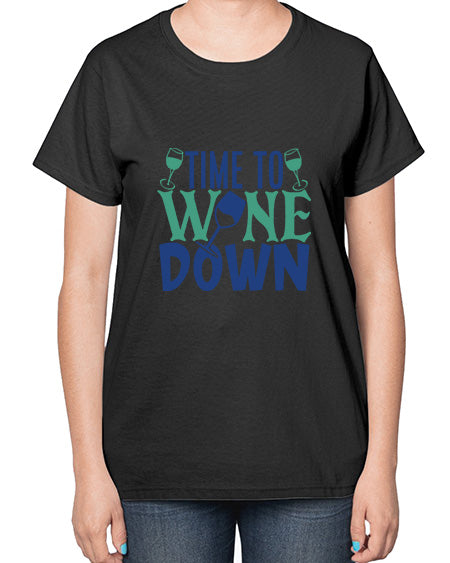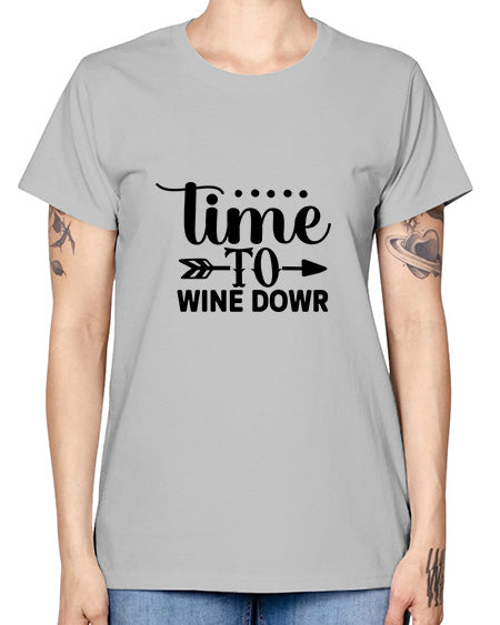 time to wine down 445# - wine- Ladies T-Shirt