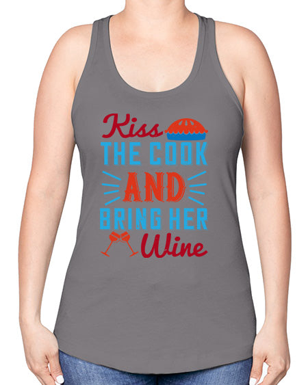 kiss the cook and bring her wine 300# - wine -Racerback Tank