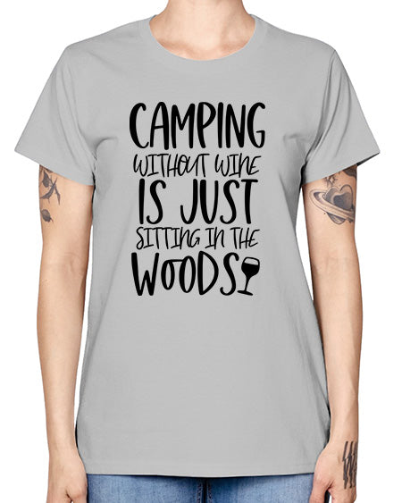 campingwithoutwineisjustsittinginthewoods 714# - wine- Ladies T-Shirt