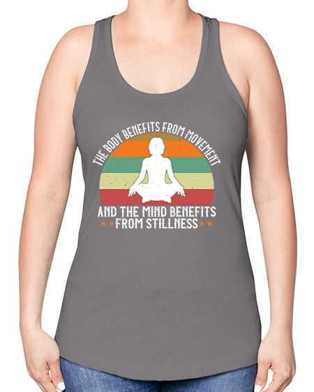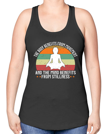 the body benefits from movement and the mind benefits from stillness 547# - yoga -Racerback Tank