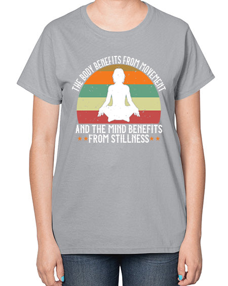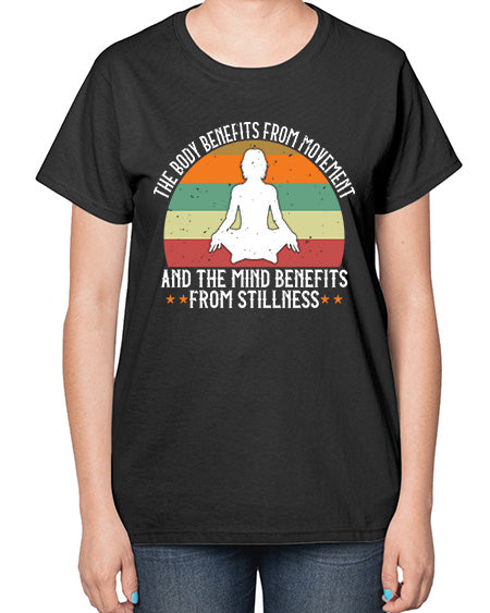 the body benefits from movement and the mind benefits from stillness 547# - yoga- Ladies T-Shirt