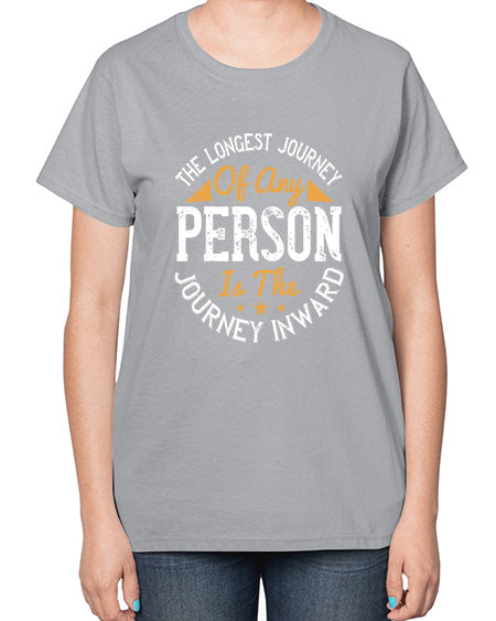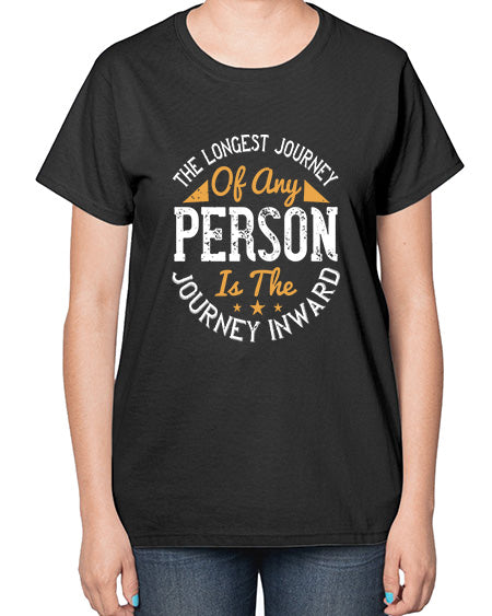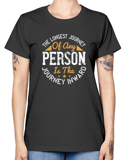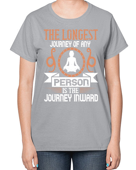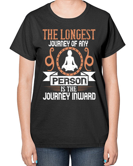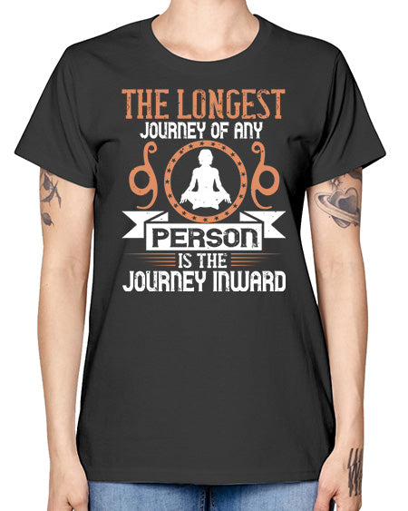 the longest journey of any person is the journey inward 550# - yoga- Ladies T-Shirt