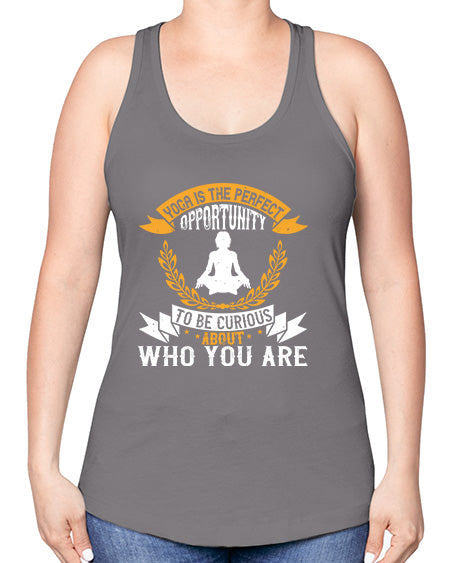 yoga is the perfect opportunity to be curious about who you are 625# - yoga -Racerback Tank