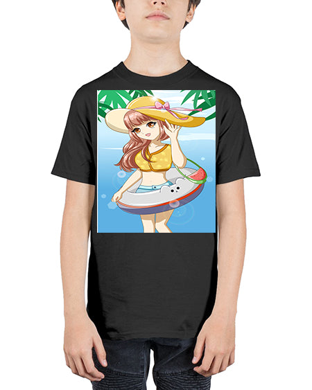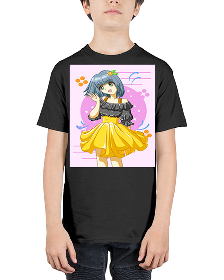 Happy and funny girl with black yellow dress in summer 41# - anime - Youth Tee Unisex