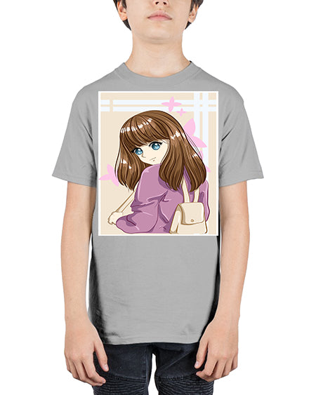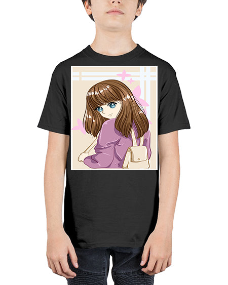 Happy and pretty college student carrying a bag 102# - anime - Youth Tee Unisex