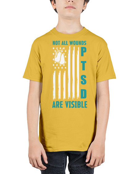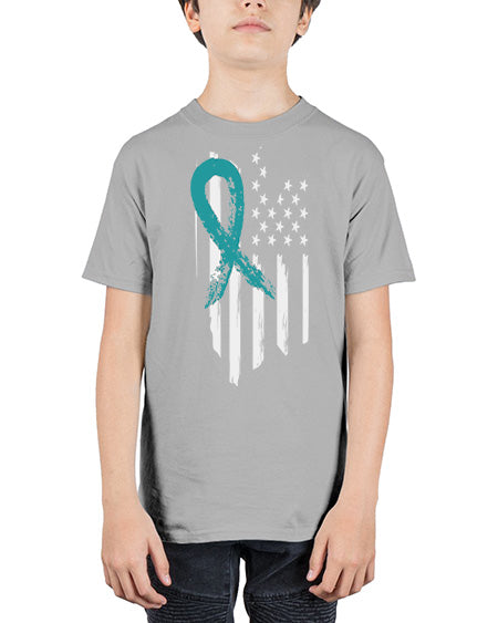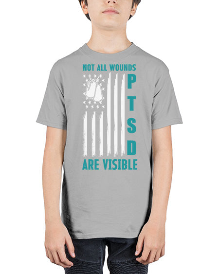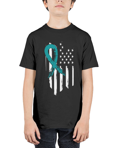 PTSD Teal Ribbon Distressed US 7# - PTSD - Youth Tee Unisex