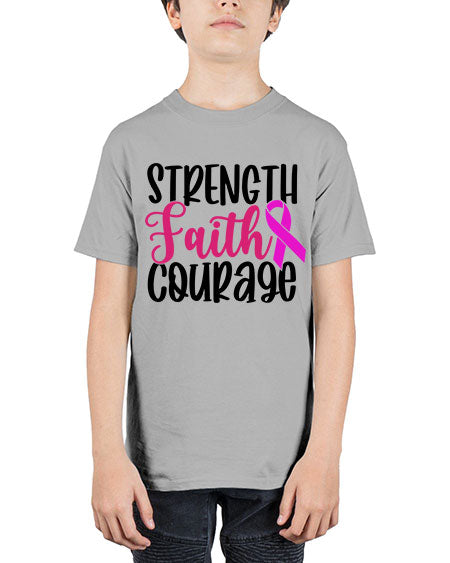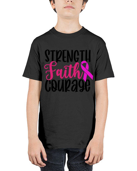 Strength Faith Courage 7# - breast cancer - Youth Tee Unisex