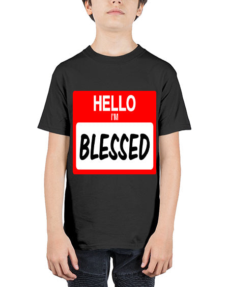 hello im blessed 133# - black words and phrases - Youth Tee Unisex