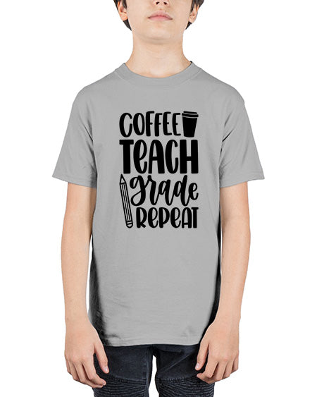 Coffee Teach Grade Repeat Style 670# - teacher - Youth Tee Unisex