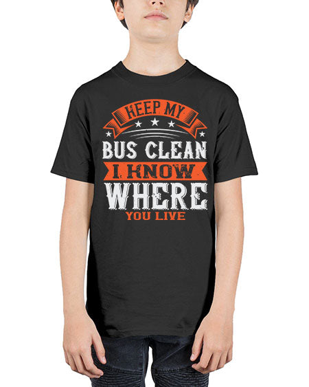 keep my bus clean i know where you live Style 1031# - Bus Driver - Youth Tee Unisex