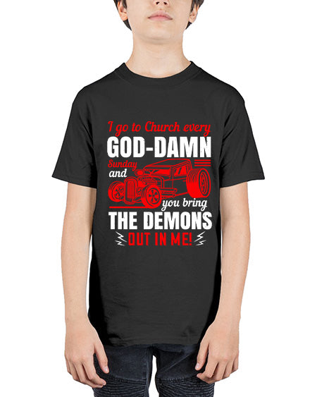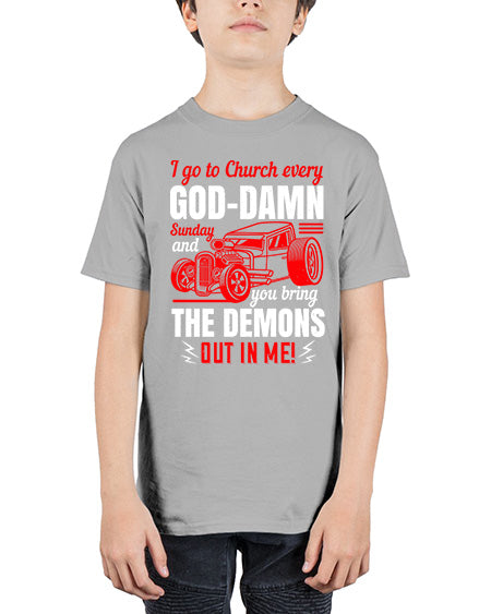 I go to Church every GodDamn Sunday and you bring the demons out in me 102# - hot rod - Youth Tee Unisex