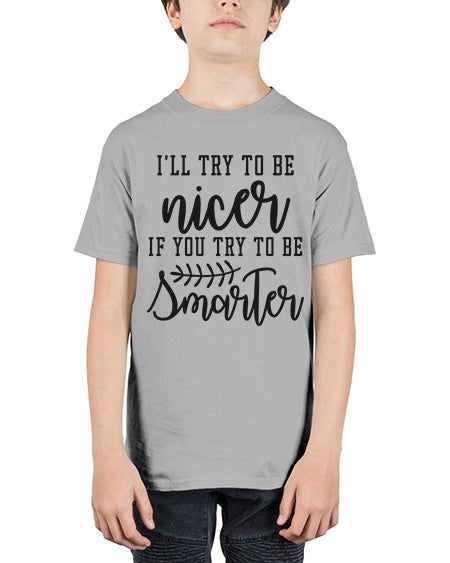 Ill try to be nicer if you try to be smarter 628# - funny - Youth Tee Unisex
