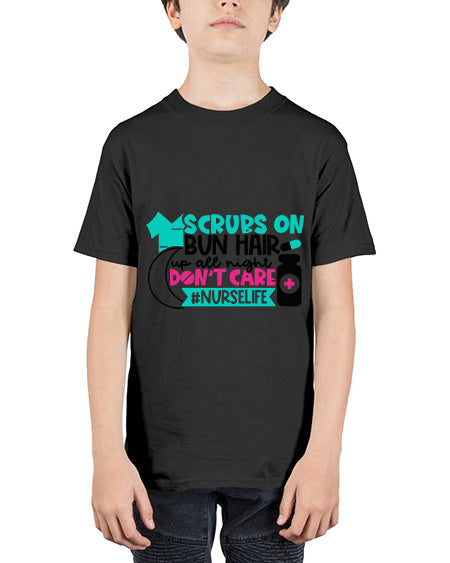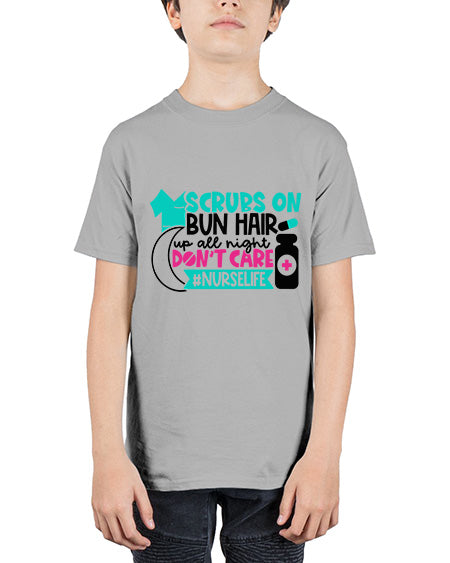 Scrubs On Bun Hair Up All Night Dont Care Nurselife Style Style 1385# - nurse - Youth Tee Unisex