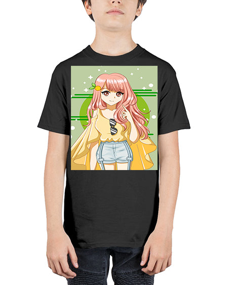 Happy and funny girl with black yellow dress in summer 41# - anime - Youth Tee Unisex