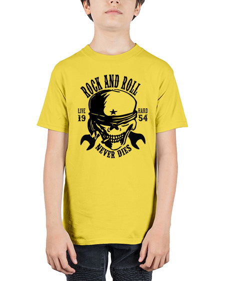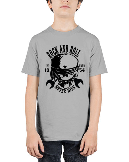 Rock and roll 1020# - skull and bones - Youth Tee Unisex