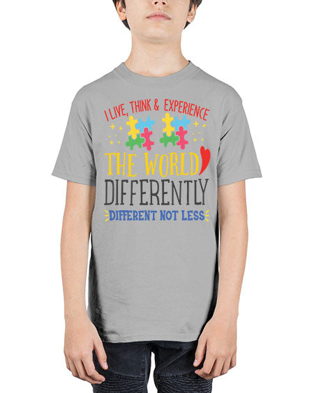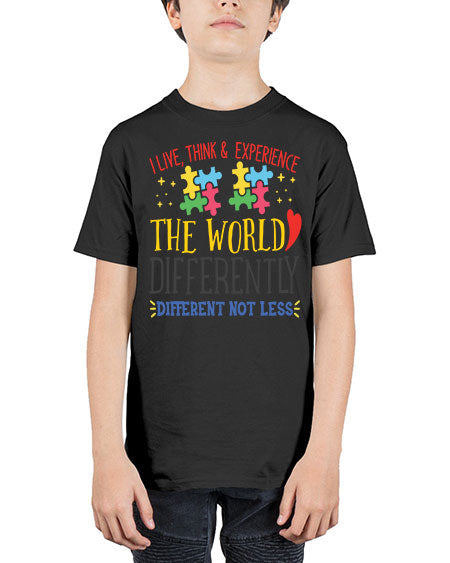 i live think experience the world differently different not less Style 20# - autism - Youth Tee Unisex