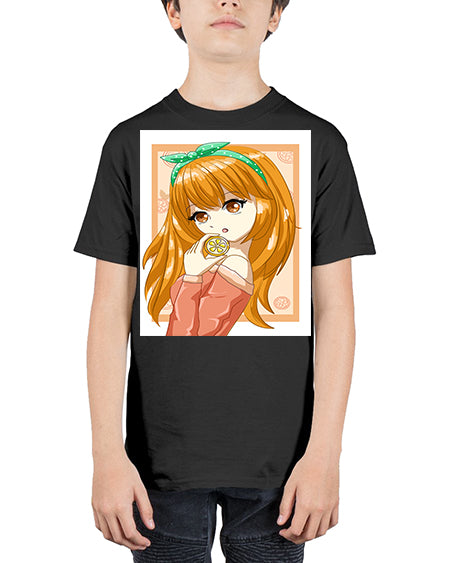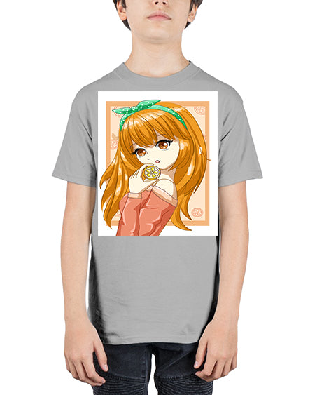 Cute and beautiful girl with orange in the summer 174# - anime - Youth Tee Unisex