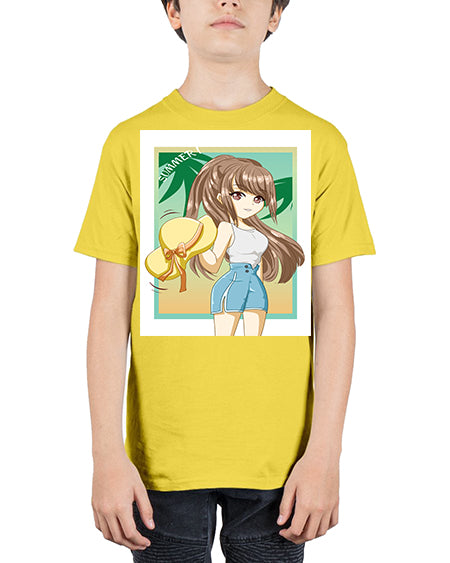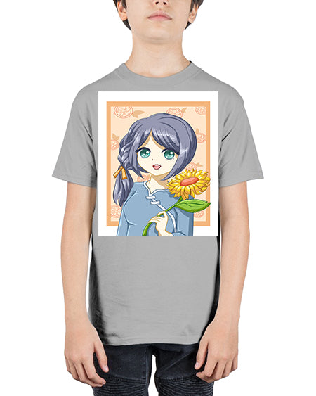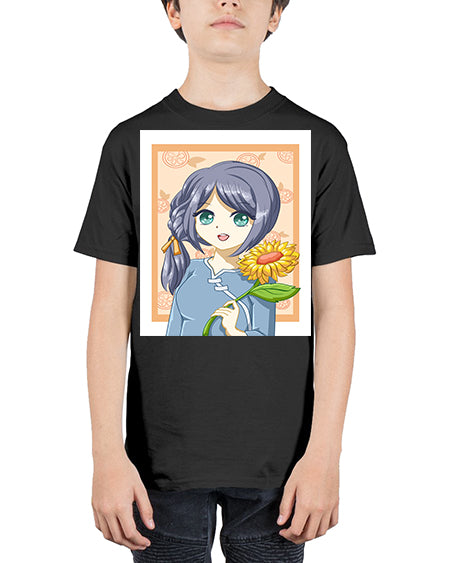 Cute and beautiful girl with sunflower in the summer 165# - anime - Youth Tee Unisex