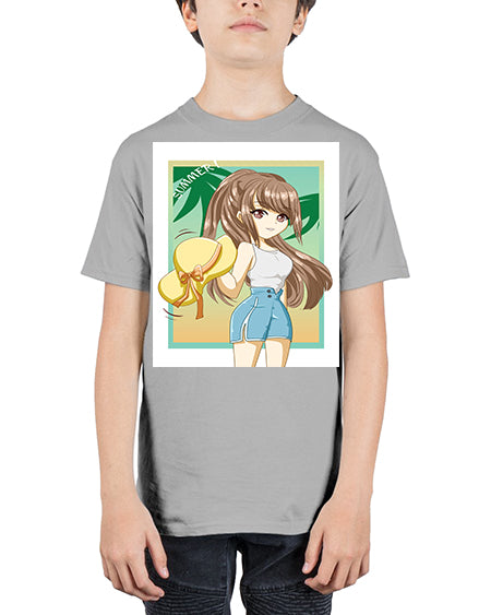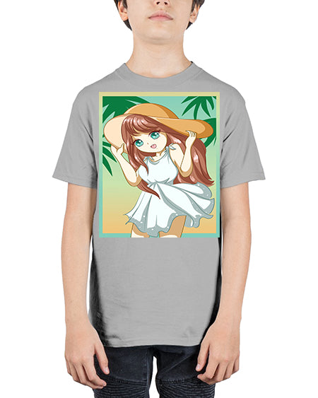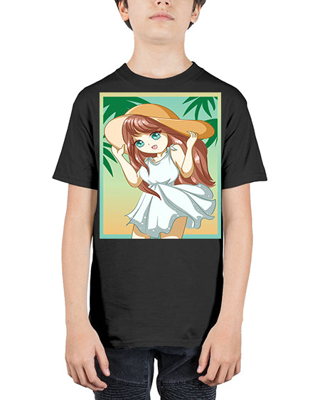 Beautiful and cute girl with hat on the beach in the summer 154# - anime - Youth Tee Unisex