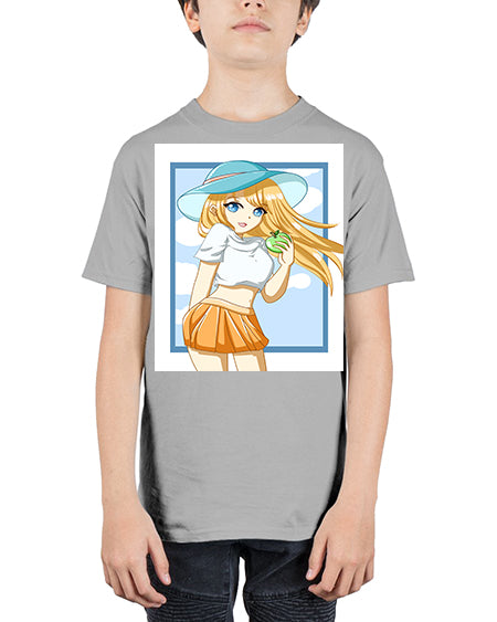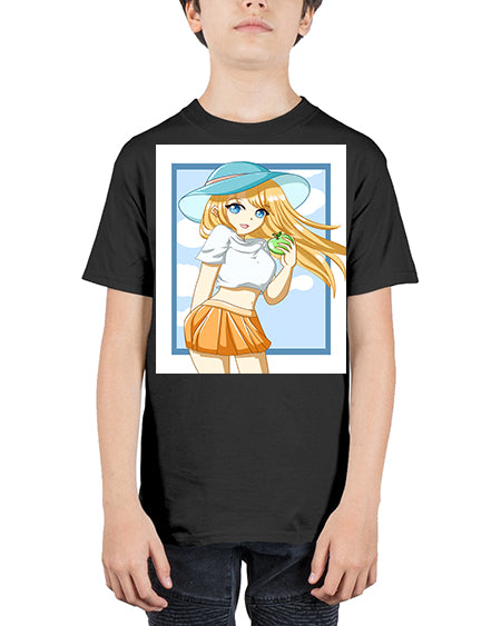 Cute and beautiful girl yellow hair with apple in the summer 158# - anime - Youth Tee Unisex