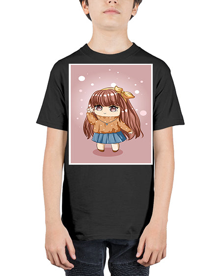 Cute and beautiful little girl long brown hair 149# - anime - Youth Tee Unisex