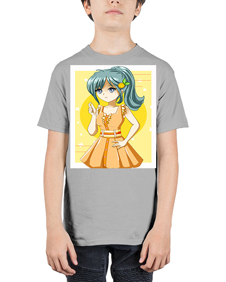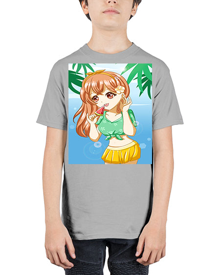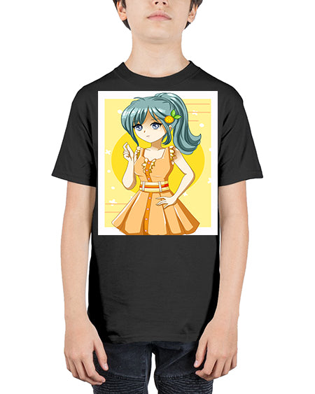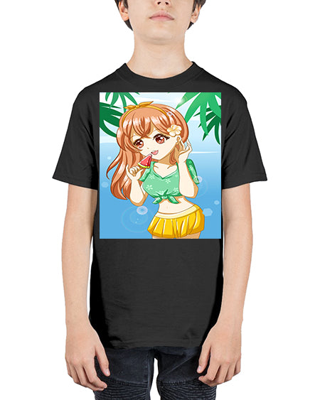 Cute and beautiful orange theme girl in summer 45# - anime - Youth Tee Unisex