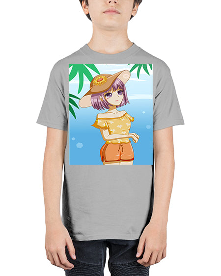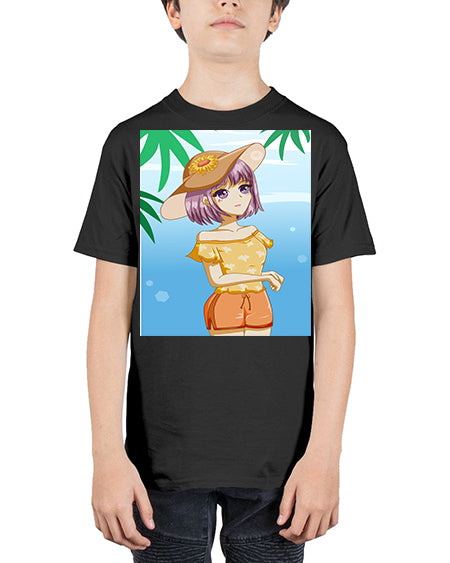 Beautiful girl in summer with sunflower 116# - anime - Youth Tee Unisex