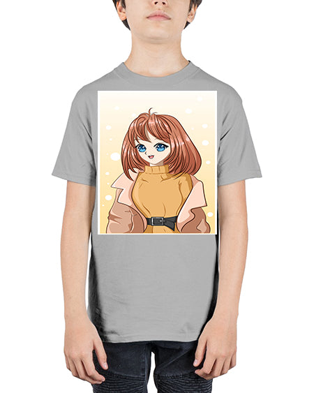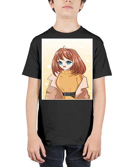 Beautiful girl short hair wearing winter clothes 168# - anime - Youth Tee Unisex
