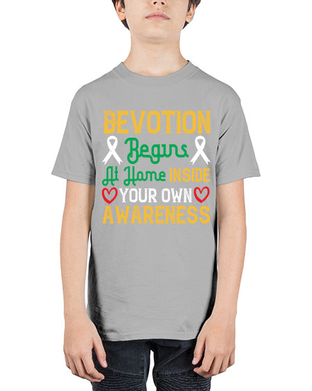 Devotion begins at home inside your own awareness Style 46# - Self awareness - Youth Tee Unisex