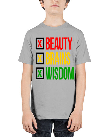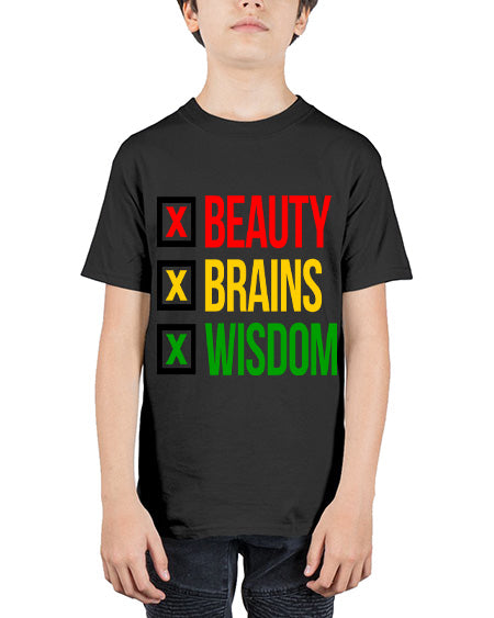 beauty brains wisdom 262# - black words and phrases - Youth Tee Unisex