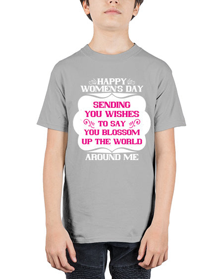 Happy Womens Day Sending you wishes to say you blossom up the world around me Style 69# - womens day - Youth Tee Unisex