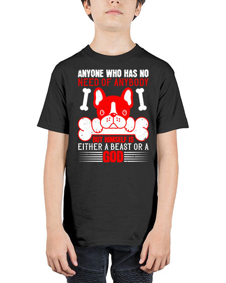 Anyone who has no need of anybody but himself is either a beast or a God Style 132# - dogs - Youth Tee Unisex