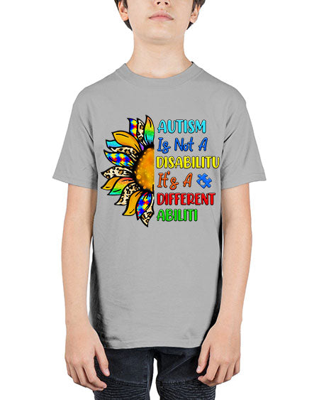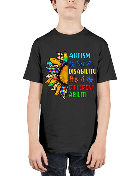 Autism is not a disabilitu its a different abiliti - autism - Youth Tee Unisex