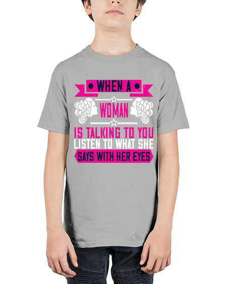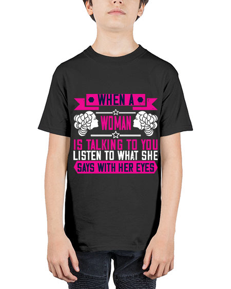 When a woman is talking to you listen to what she says with her eyes Style 21# - womens day - Youth Tee Unisex