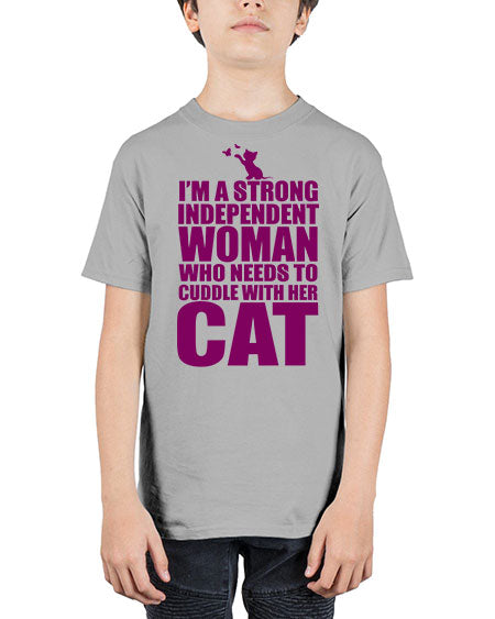 Im a strong independent woman who needs to cuddle with her cat - cats - Youth Tee Unisex