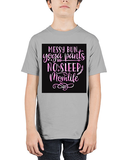 messy bun yoga pants no sleep momlife 1284# - mom - Youth Tee Unisex