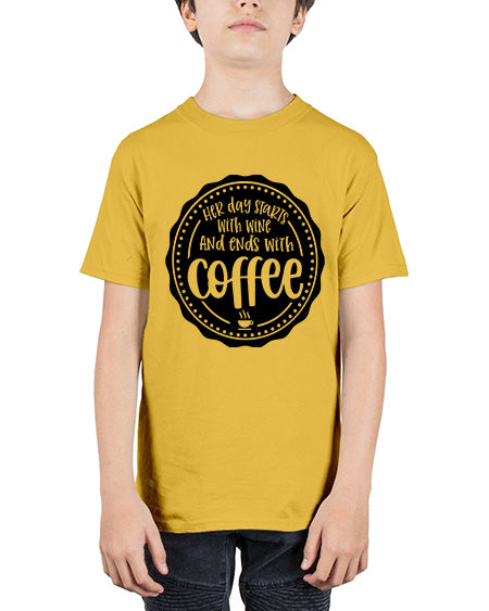 her day starts with wine and ends with coffee 1041# - coffee - Youth Tee Unisex