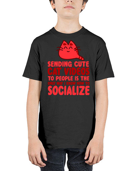 sending cute cat videos to people is the only way i know how to socialize - cats - Youth Tee Unisex