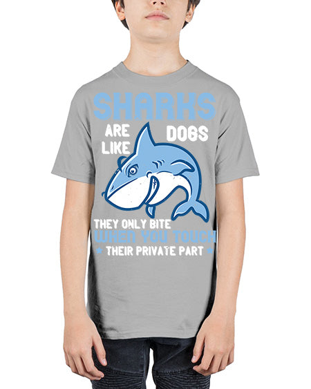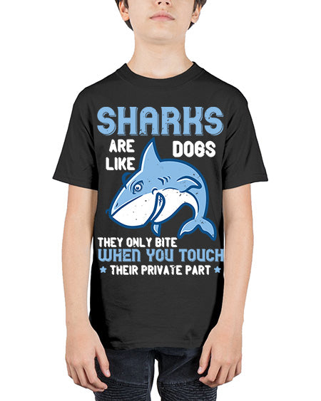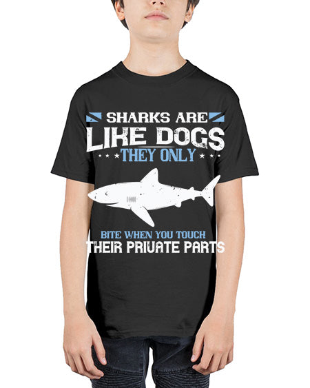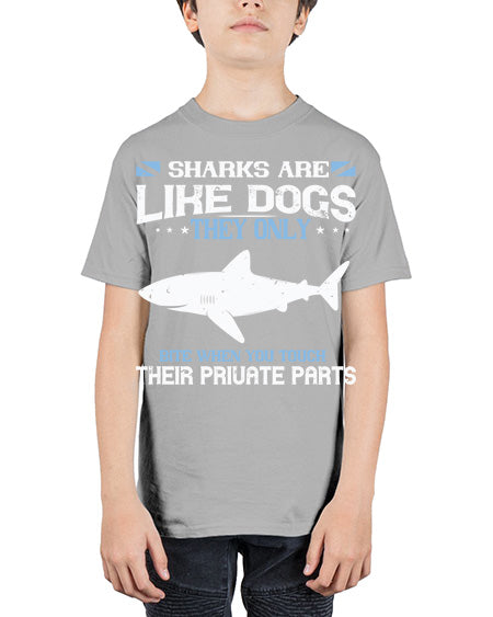 Sharks are like dogs They only bite when you touch their private part Style 38# - shark-fish - Youth Tee Unisex
