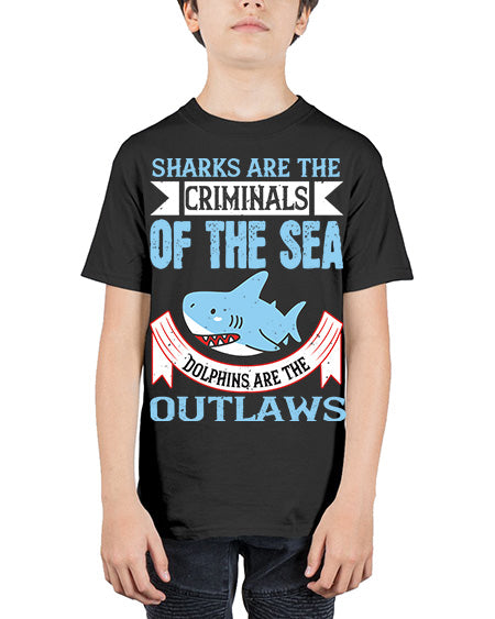 Sharks are the criminals of the sea Dolphins are the outlaws Style 32# - shark-fish - Youth Tee Unisex