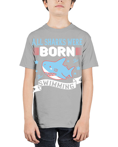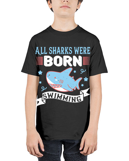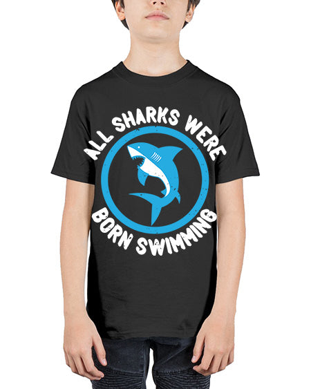 All sharks were born swimming Style 100# - shark-fish - Youth Tee Unisex