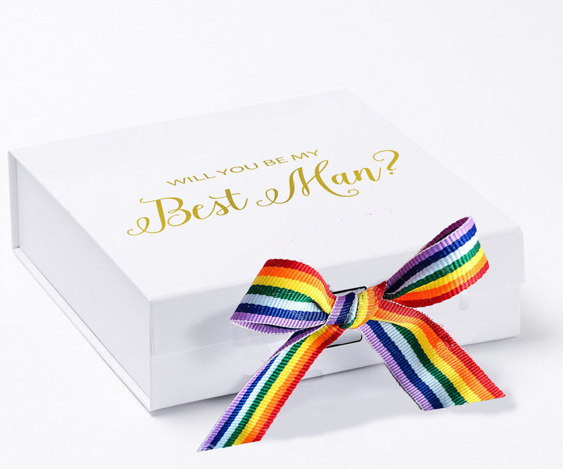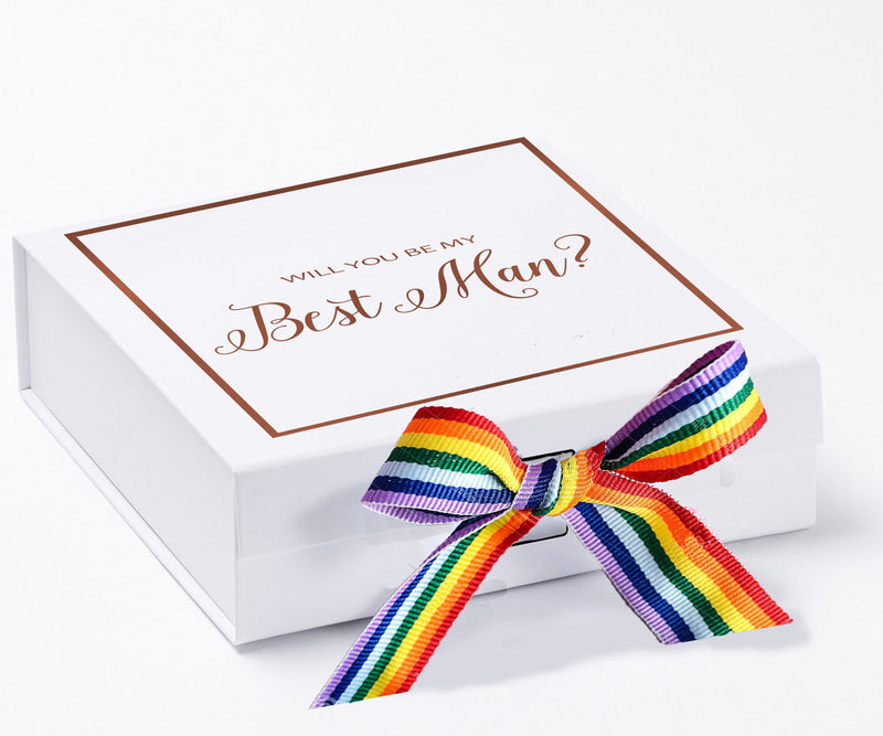 Will You Be My Best man? Proposal Box White - Border - Rainbow Ribbon