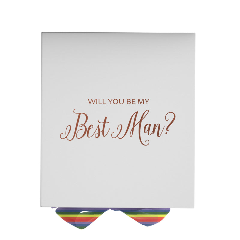 Will You Be My Best man? Proposal Box White - No Border - Rainbow Ribbon