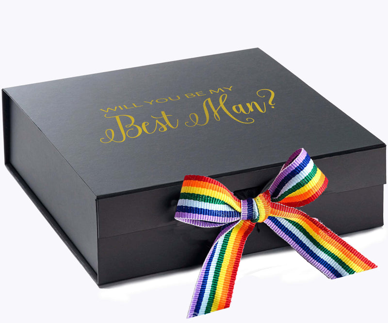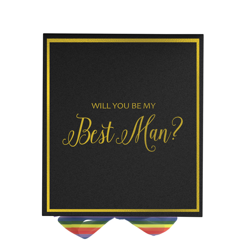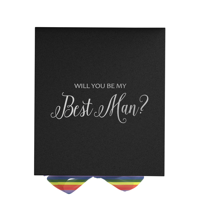 Will You Be My Best man? Proposal Box black - No Border - Rainbow Ribbon