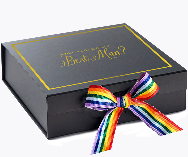 Will You Be My Best man? Proposal Box black - Border - Rainbow Ribbon