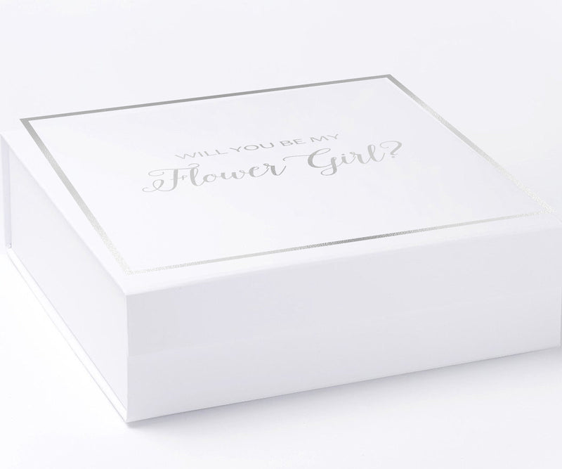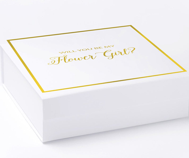 Will You Be My Flower Girl? Proposal Box White - Border - No ribbon