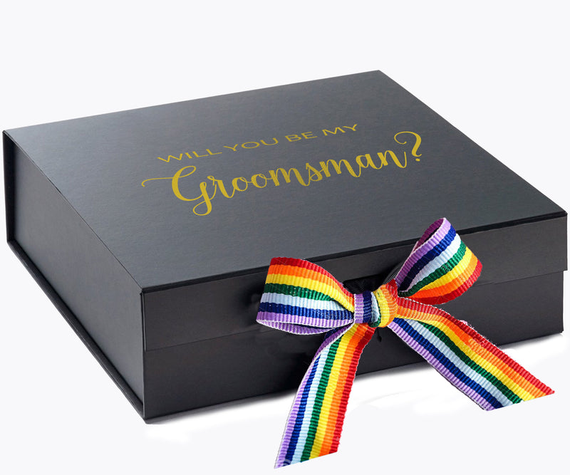 Will You Be My groomsman? Proposal Box black - Border - Rainbow Ribbon