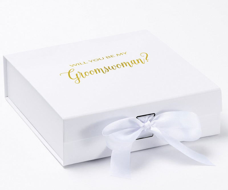 Will You Be My groomswoman? Proposal Box White - Border - Rainbow Ribbon