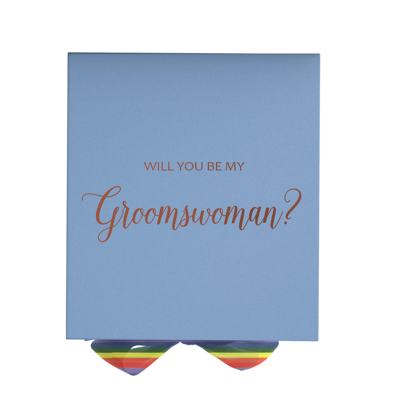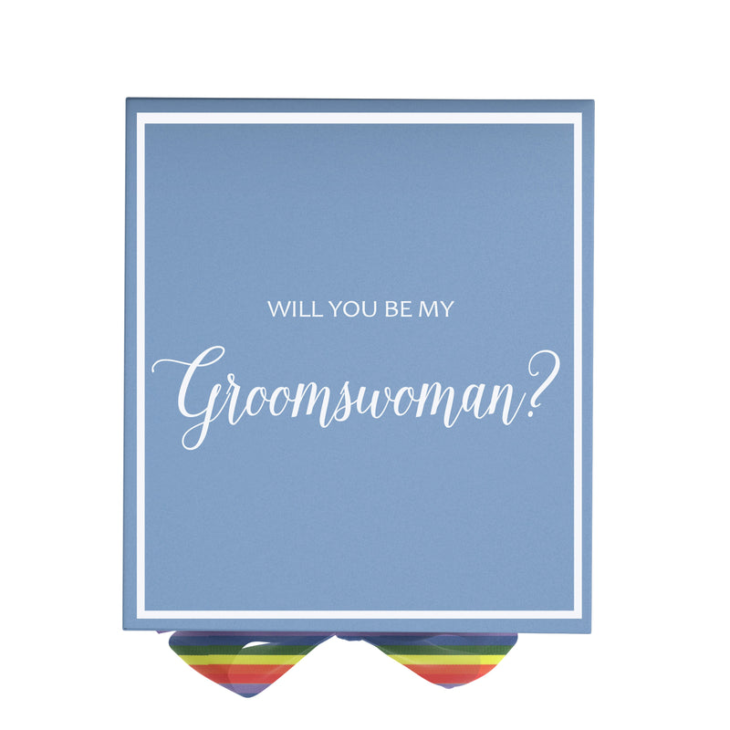 Will You Be My groomswoman? Proposal Box light blue - No Border - Rainbow Ribbon